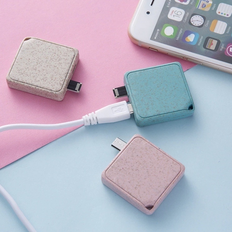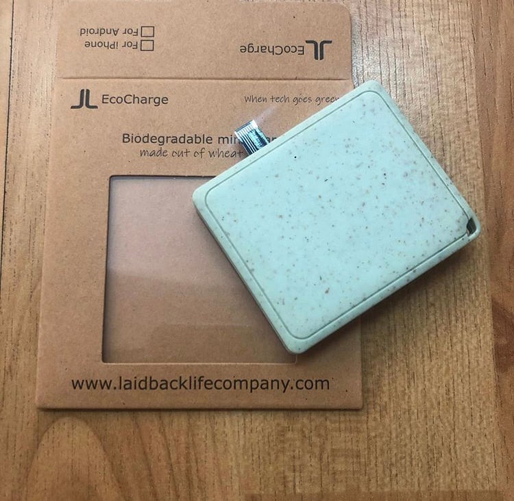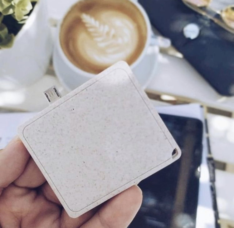 Biodegradable mini charger made out of wheat straw. EcoCharge can degrade in the environment in 4 months whereas plastic takes around 400 years to degrade. EcoCharge is rechargeable and has a capacity of 1000mAh. It is the perfect go green tech to have with you at all times!