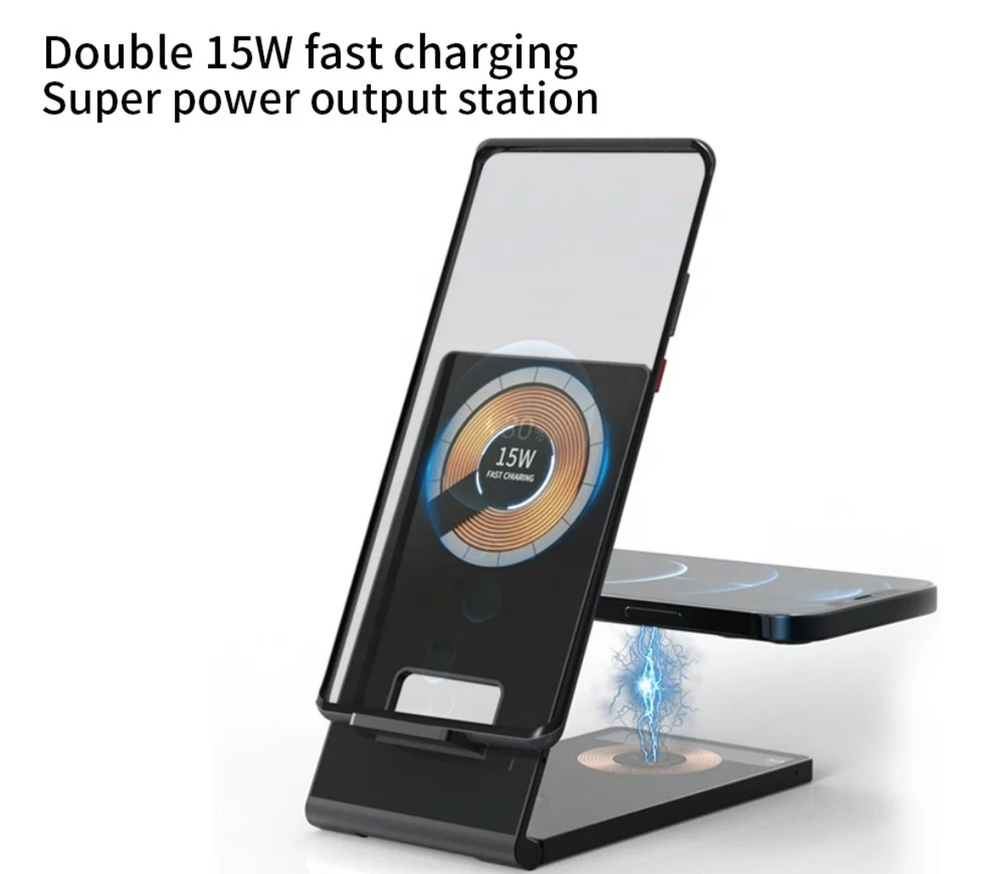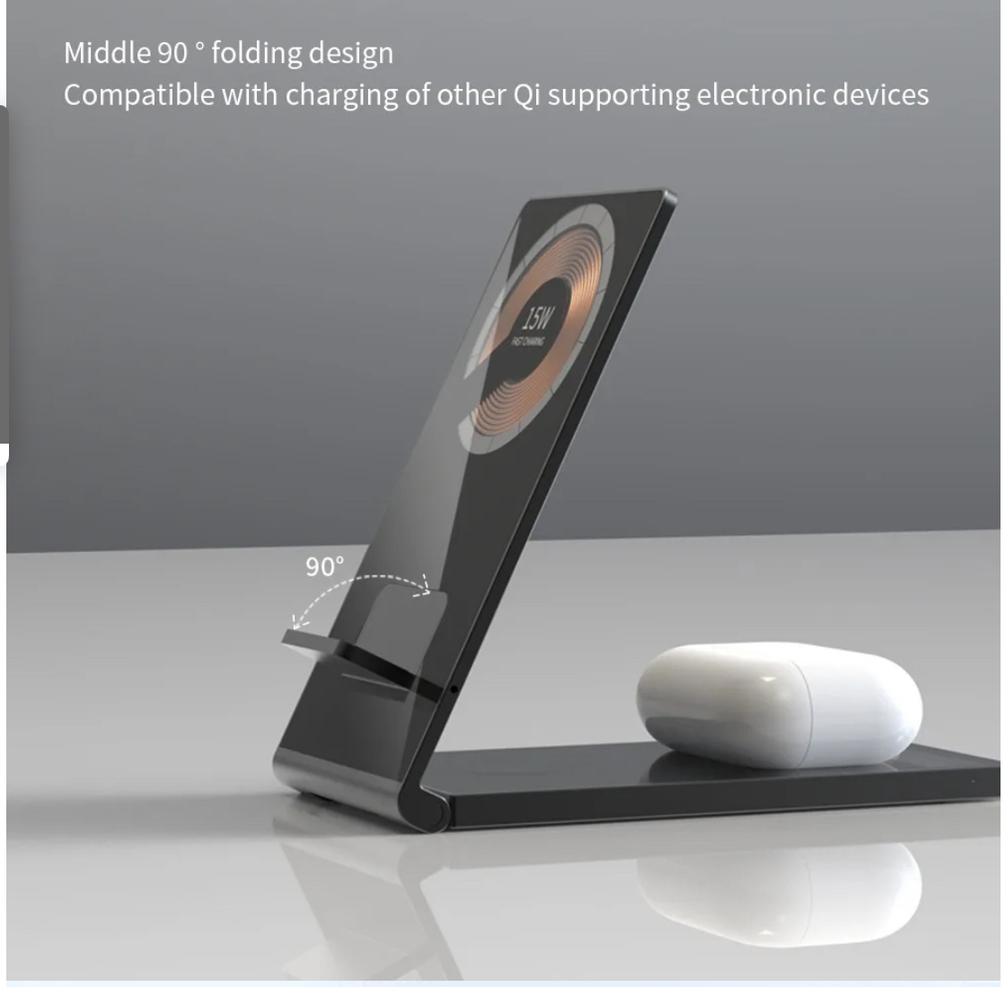 An ultra thin wireless docking station that can charge your mobile phone, smart watch and wireless earphones all at once! Compatible with all devices that support wireless charging.